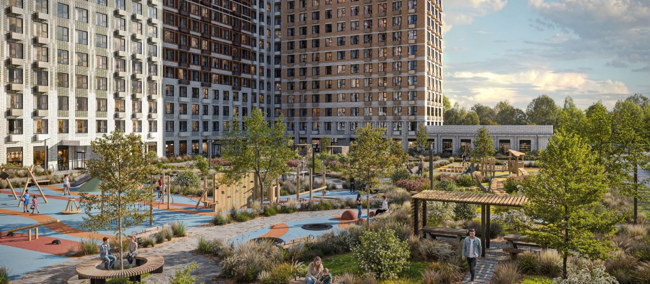 На территории квартала будут построены 22 дома, две школы, поликлиники и пять детских садов. Один из центральных элементов проекта — широкий пешеходный бульвар, где мы создали пространства для спорта, прогулок и отдыха. Яркой точкой притяжения стал ПлейХаб «Ферма» — масштабная игровая зона с домом-мельницей, искусственным ручьём и развивающими элементами для детей. В 2024 году ПлейХаб стал победителем «Всероссийской премии лучших проектов создания игровой среды» и получил награду «Лучшая реализация игровой площадки среди девелоперских проектов».